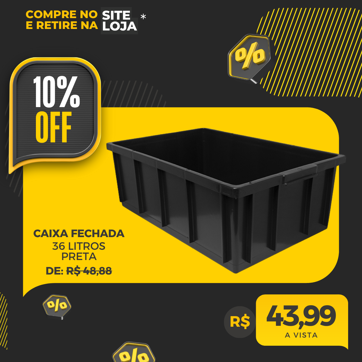Com capacidade de 36 litros, estrutura reforçada e um design fechado que protege contra sujeira e umidade, essa caixa é a solução ideal para organizar desde objetos pessoais até itens de uso diário. E o melhor: você pode comprar em pequenas quantidades, do jeito certo para quem quer qualidade e não precisa de grandes lotes.