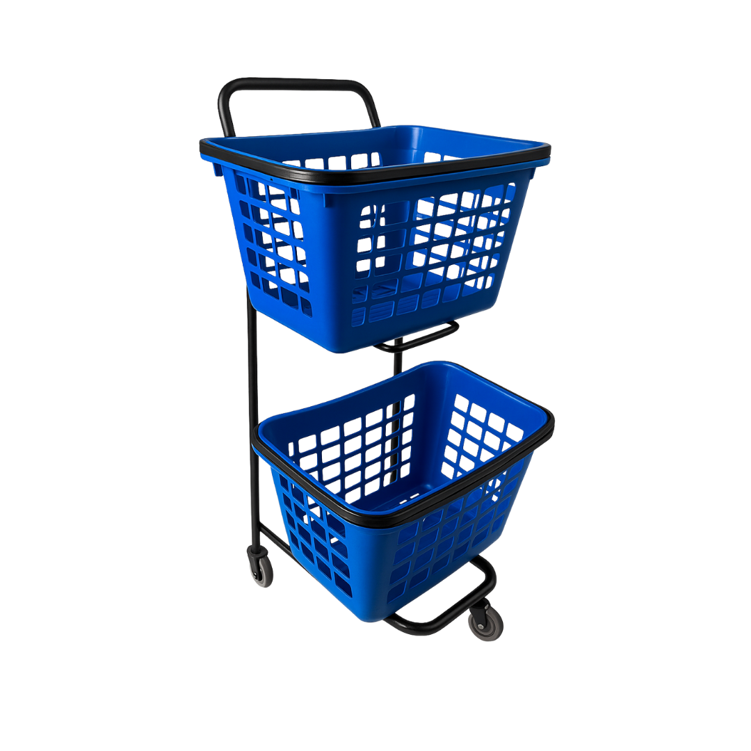 Capacidade Dupla: Projetado para acomodar duas cestas de forma segura e estável, dobrando a capacidade de transporte em uma única viagem. Perfeito para clientes que compram mais itens ou para a logística interna do seu negócio.