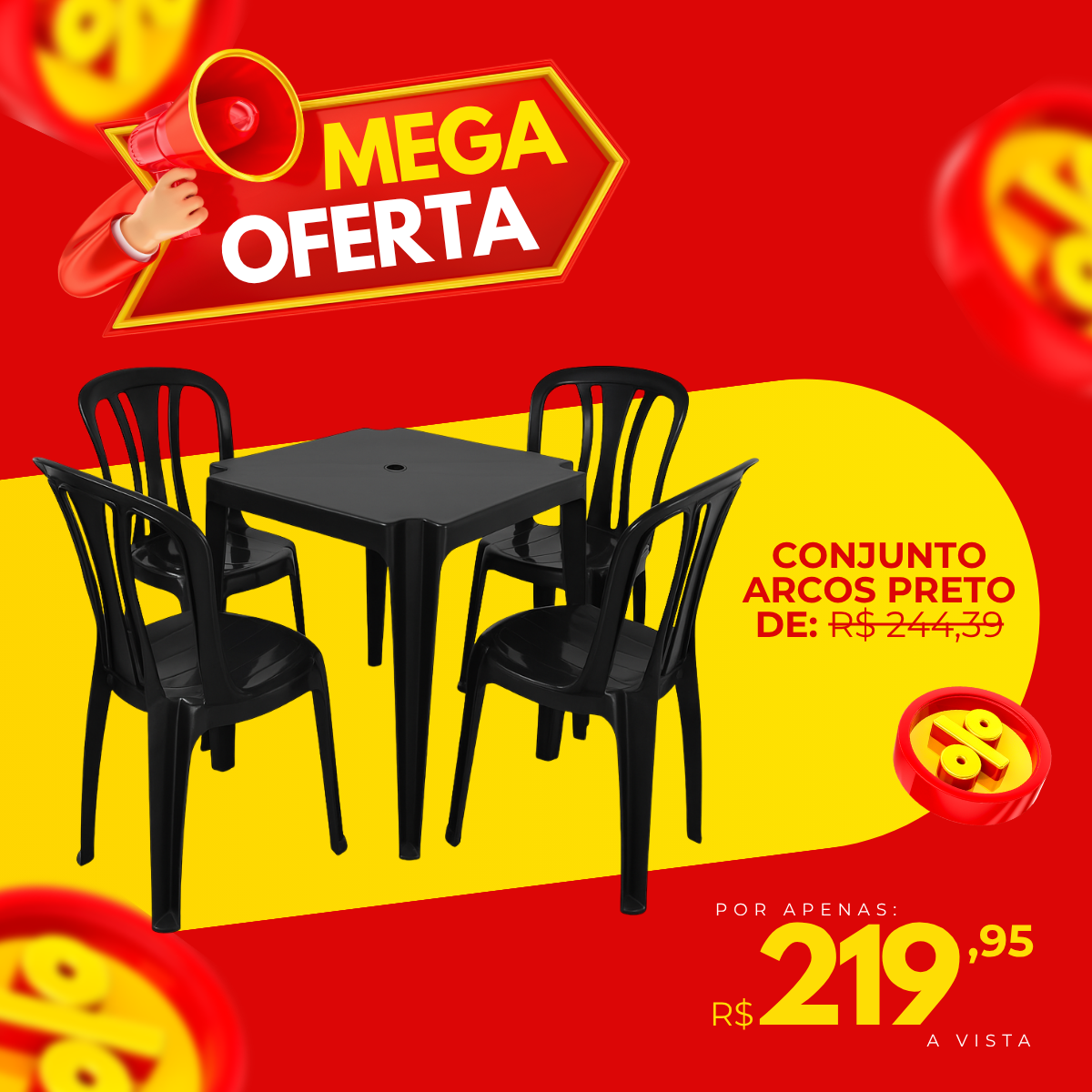 A solução inteligente para conforto e bem-estar em eventos corporativos, festas, auditórios e residências. Desenvolvido para combinar funcionalidade e estilo, o Conjunto Mesa com Quatro Cadeiras Arcos Preto oferece conforto duradouro em diversas situações. Seja em reuniões de negócios ou momentos de lazer, eleve sua experiência com a versatilidade do nosso conjunto.